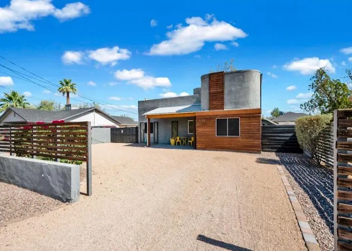 La Villa Modern Art House In Midtown, Pet Friendly está equipada con tetera, nevera y un horno, además de una cocina bien equipada. Abyssinia Restaurant and Cafe, que sirve una gran variedad de platos, está a 1 km. La Villa Modern Art House In Midtown, Pet Friendly también está a 20 minutos en coche del aeropuerto Internacional de Phoenix-Sky Harbor.